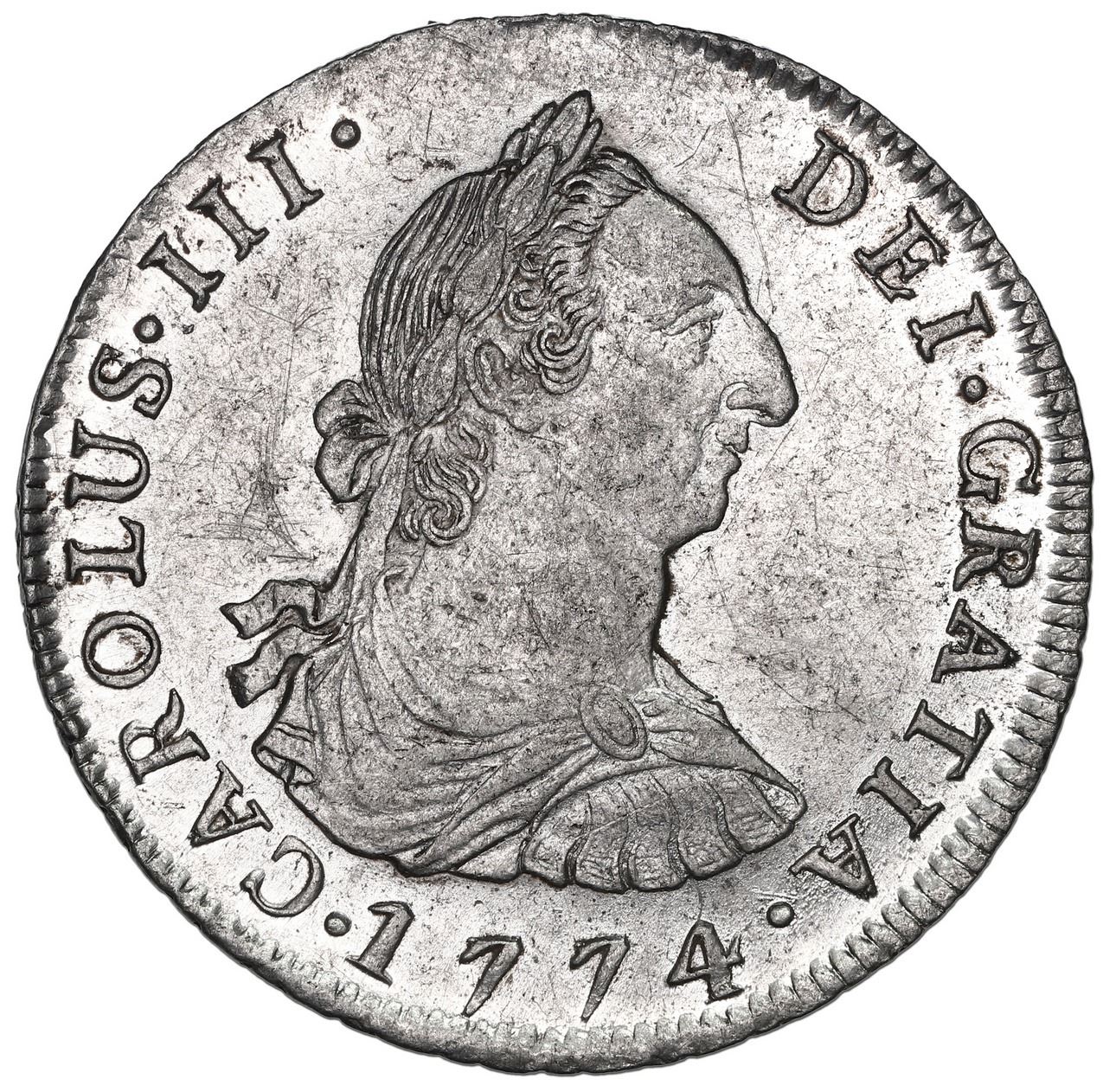 Potosi, Bolivia, bust 4 reales, Charles III, 1774 JR, NGC AU 58 ("top pop").