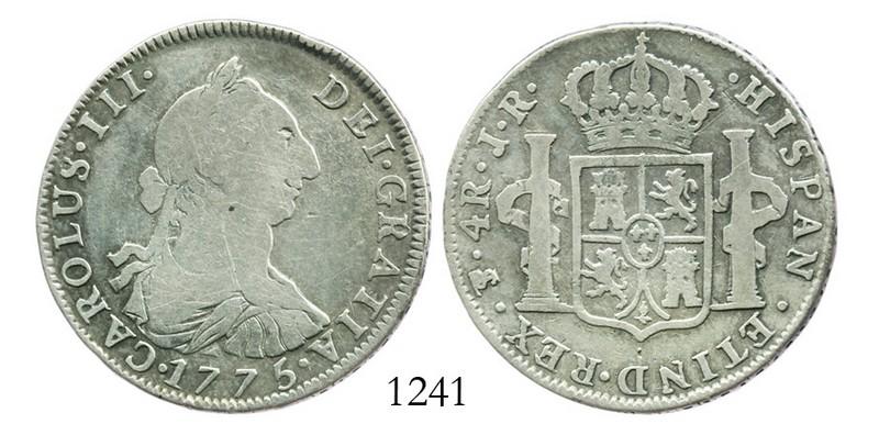 Potosi, Bolivia, bust 4 reales, Charles III, 1775JR. KM-54; CT-1176. 12.9 grams. About Fine with bold, toned legends. Pedigreed to the Mark Bir collection.