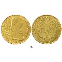 Potosi, Bolivia, bust 8 escudos, Charles IV, 1802PP, salvaged.
