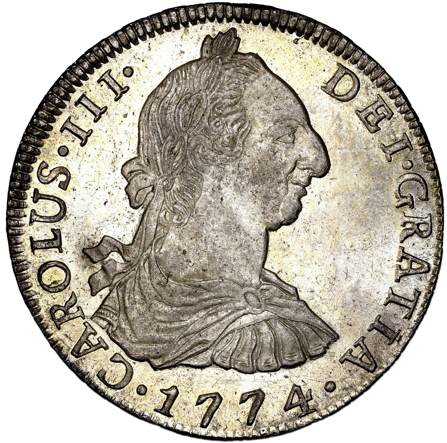Potosi, Bolivia, bust 8 reales, Charles III, 1774 JR, NGC MS 63+.