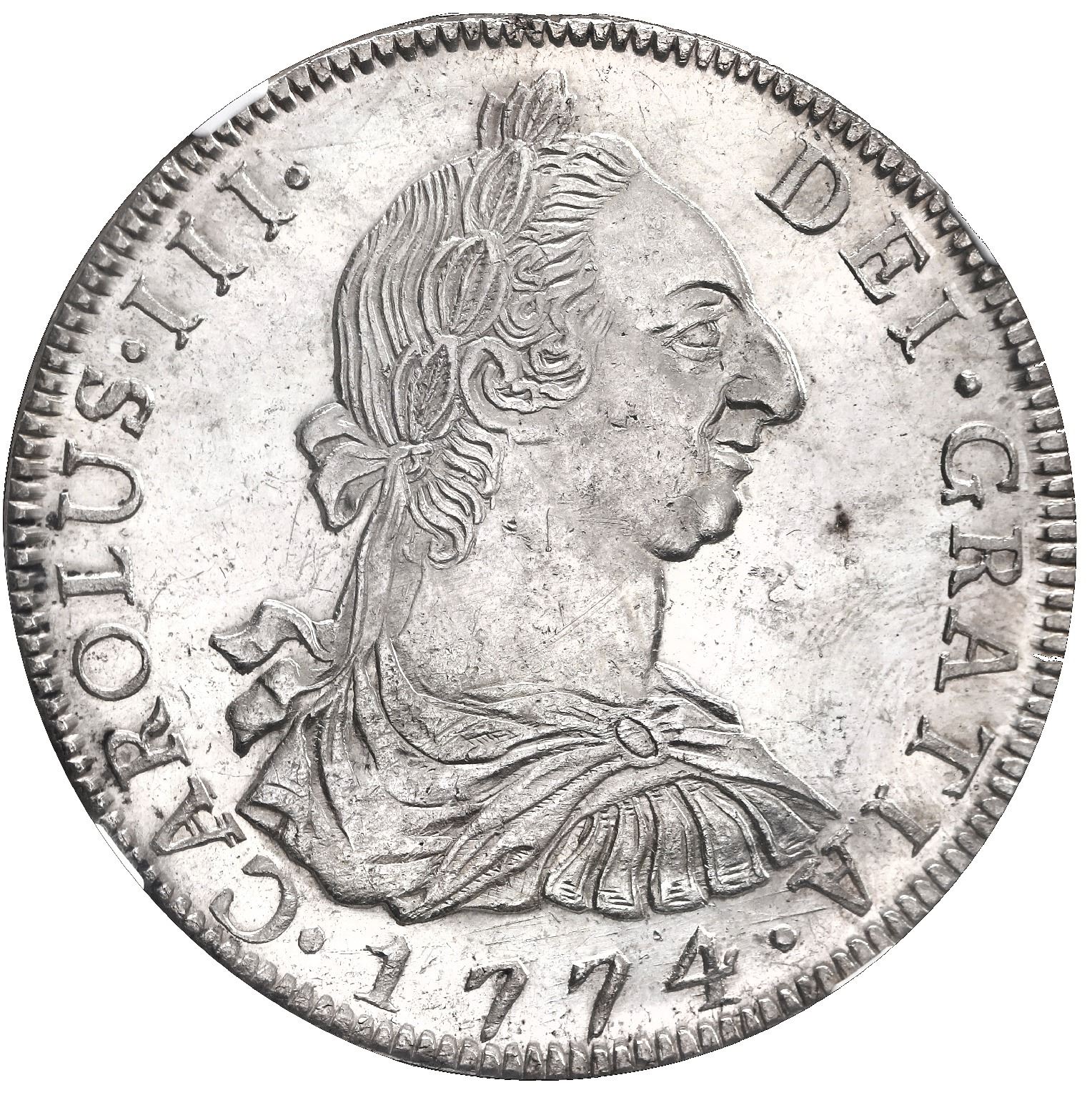 Potosi, Bolivia, bust 8 reales, Charles III, 1774 JR, NGC MS 63.
