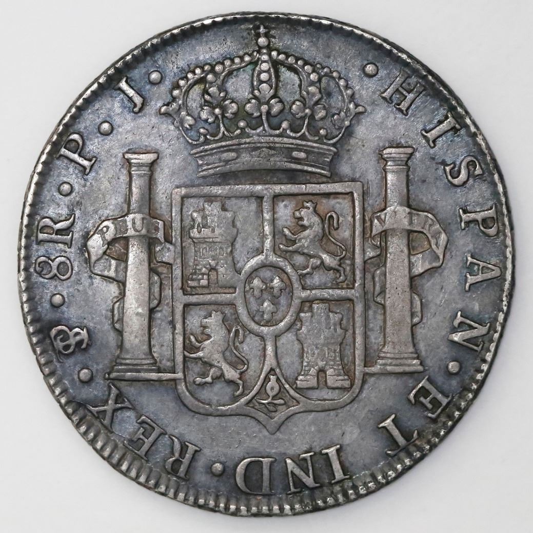 Potosi, Bolivia, bust 8 reales, Charles IV, 1808PJ. KM-73; CT-732. 26.61 grams. Deeply rainbow toned AXF, no problems.