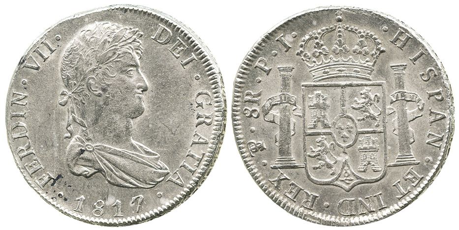 Potosi, Bolivia, bust 8 reales, Ferdinand VII, 1817PJ.
