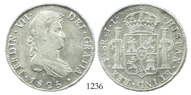 Potosi, Bolivia, bust 8 reales, Ferdinand VII, 1825JL, final year of colonial issues.