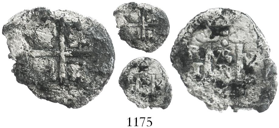 Potosi, Bolivia, cob 1/2 real, (1652E) transitional Type IIc, rare. S-P37; KM-A12.4; CT-Type 262. 0.7 gram. Thin and corroded (unspecified salvage) but with nearly full pillars and cross, the former with motto as PL-VS-VL / T-R-A, uneven toning, technically no worse than Fine.