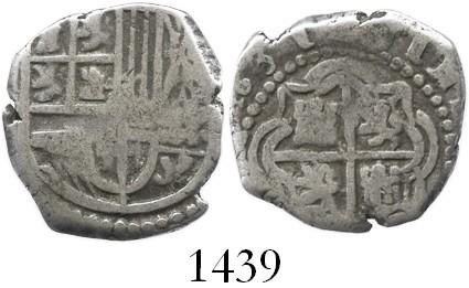 Potosi, Bolivia, cob 1 real, (1)631(T), rare. S-P26; KM-12a; CT-1026. 3.3 grams. Bold 631 of date, with good full shield and cross, Fine+ with toned fields.
