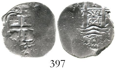 Potosi, Bolivia, cob 1 real, 1664E. S-P37a; KM-13; CT-1064. 2.5 grams. Corrosion-free and attractive
