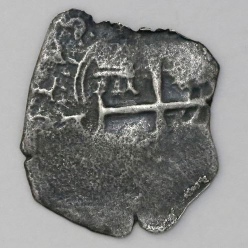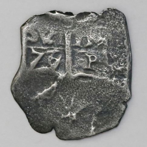 Potosi, Bolivia, cob 1 real, 1677/6E. S-P37b; KM-23; CT-unl. 1.27 grams. Scarce overdate, small flan but bold details with minimal corrosion, clear date, mintmark, and assayer. With ROBCAR photo-certificate #M180159. Recovered from: Consolacion, sunk in 1681 off Santa Clara Island, Ecuador