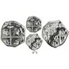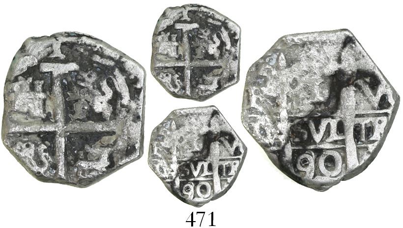 Potosi, Bolivia, cob 1 real, 1690VR. S-P40; KM-23; CT-729. 2.59 grams. Solid coin with minimal corrosion but clipped into a somewhat octagonal shape in its time, with bold date between pillars, good full cross, streaks of black on both sides. Recovered from: Feversham, sunk in 1711 off Nova Scotia, Canada