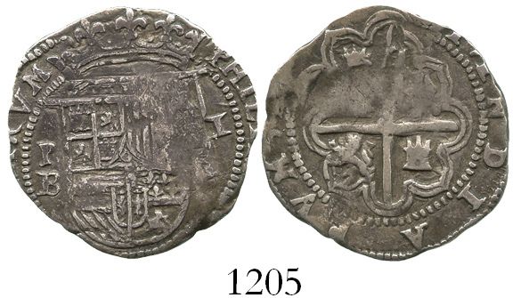 Potosi, Bolivia, cob 1 real, Philip II, assayer B (2nd period), Cayon Plate Coin.
