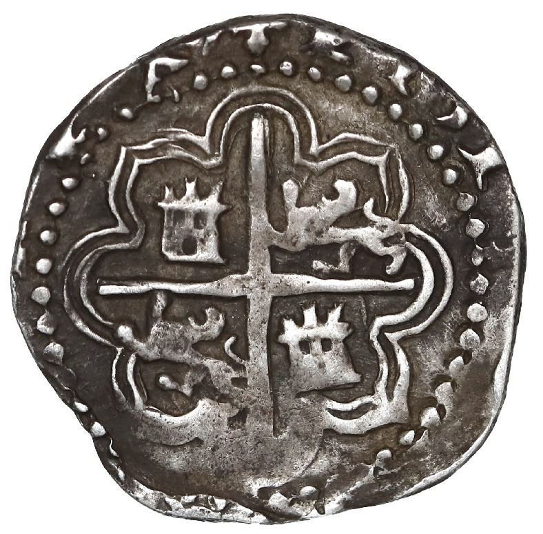 Potosi, Bolivia, cob 1 real, Philip II, assayer B/L/erasure (1st period), no eagles in Naples-Sicily