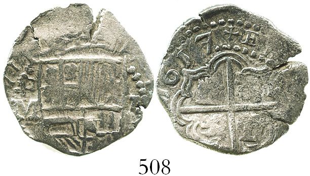 Potosi, Bolivia, cob 2 reales, 1617M, bold full date (rare), Grade 1.