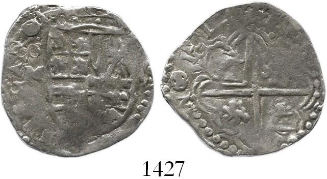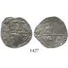 Potosi, Bolivia, cob 2 reales, 1617M, rare first date on Potosi cobs. S-P19; KM-8; CT-356. 6.5 grams. Broad flan with full date and P-M, good full shield, plugged at edge at end of cross, AVF.