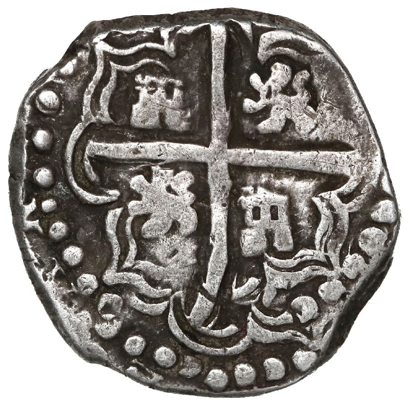 Potosi, Bolivia, cob 2 reales, (1626) T/P, error denomination z over O-IIII, very rare. S-P24; KM-14a; Cal-unl. 6.85 grams. Choice full shield with bold P-T to left and blatant denomination z punched over error denomination O-IIII to right, the under-assayer P quite weak but decisive due to die-match with others of this error (just two others known, one with just P and the other with T/P), the cross also full and bold but slightly doubled at bottom, contrastingly toned VF.