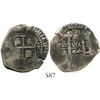 Potosi, Bolivia, cob 2 reales, 1656E, PH at top. S-P37a; KM-16; CT-900. 6.8 grams. Broad flan with f
