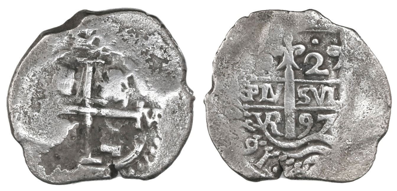 Potosi, Bolivia, cob 2 reales, 1697VR.
