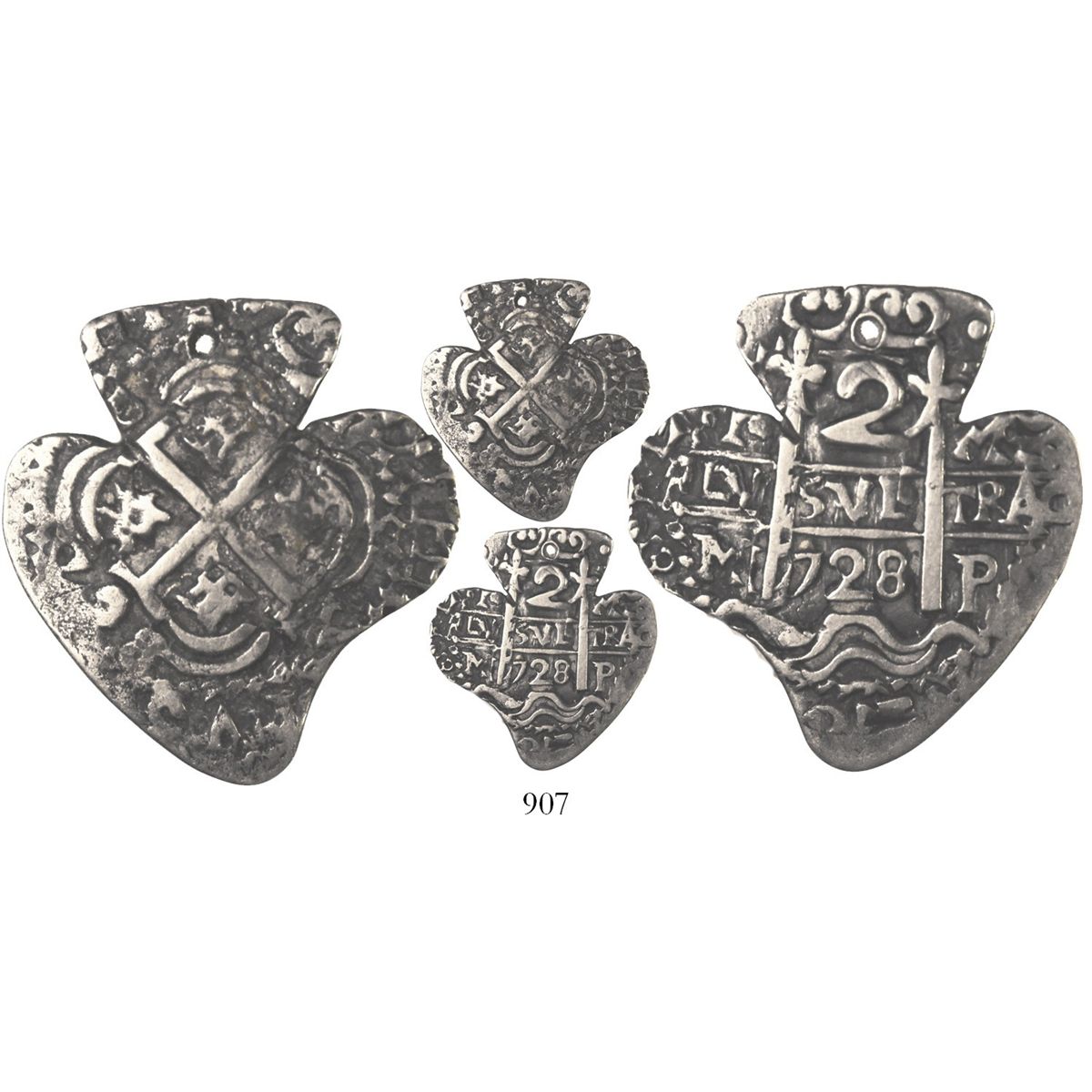 Potosi, Bolivia, cob 2 reales Heart, 1728M, very rare.
