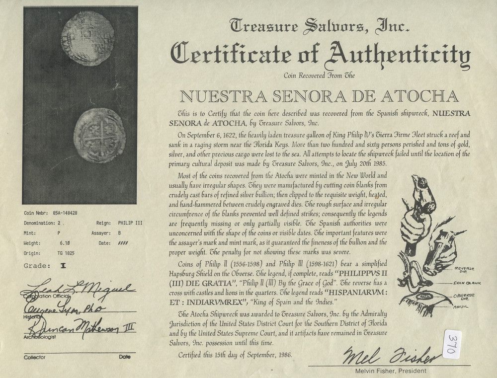 All items are genuine unless noted. Most shipwreck coins and artifacts come with a certificate of authenticity (please check the description for each item). By bidding in this auction you understand and agree to the Terms and Conditions posted here.