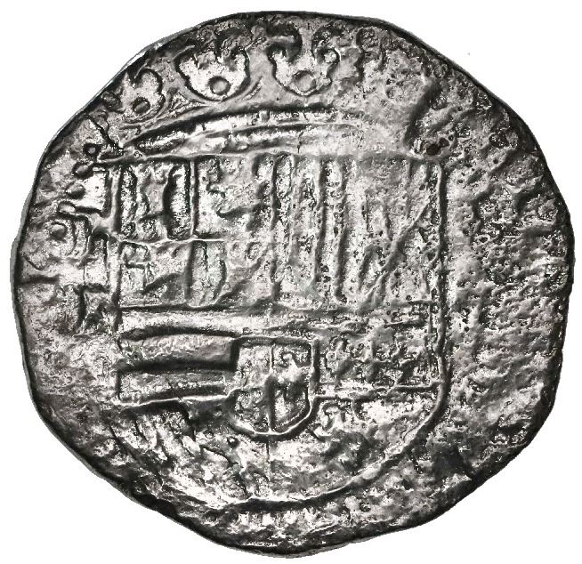 Potosi, Bolivia, cob 2 reales, Philip II, assayer B (2nd period), Grade 2. S-P6; KM-3.2; Cal-370. 6.16 grams. Perfectly round flan with full and sharp details per the period (note certificate says assayer R in error), with only faint pitting on obverse, desirable type. With Fisher tag and photo-certificate #94A-268360.From: Atocha, sunk in 1622 west of Key West, Florida