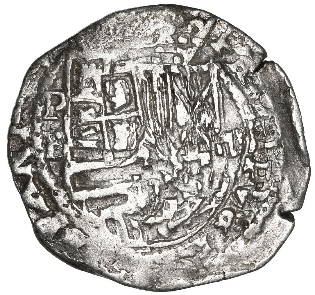 Potosi, Bolivia, cob 2 reales, Philip II, assayer B (5th period), borders of x's on both sides, NGC