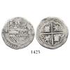 Potosi, Bolivia, cob 2 reales, Philip II, assayer M to right, rare.