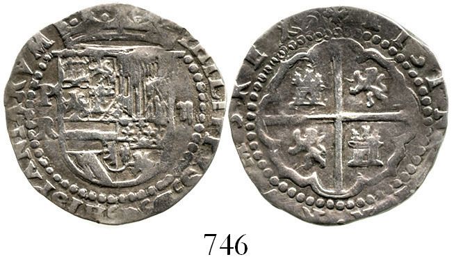Potosi, Bolivia, cob 2 reales, Philip II, assayer R (Rincon) to left. S-P1; KM-3.2; CT-485 (under Li