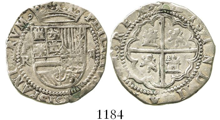 Potosi, Bolivia, cob 2 reales, Philip II, assayer R to left (Rincon).