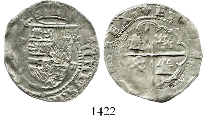 Potosi, Bolivia, cob 2 reales, Philip II, assayer not visible (Rincon).