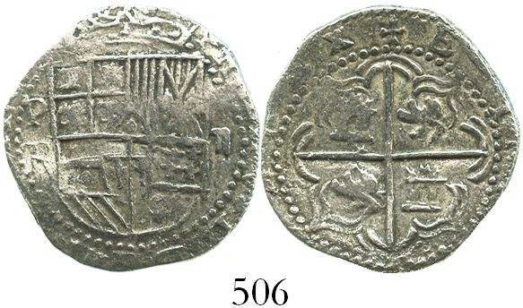 Potosi, Bolivia, cob 2 reales, Philip III, assayer R, Grade 1.