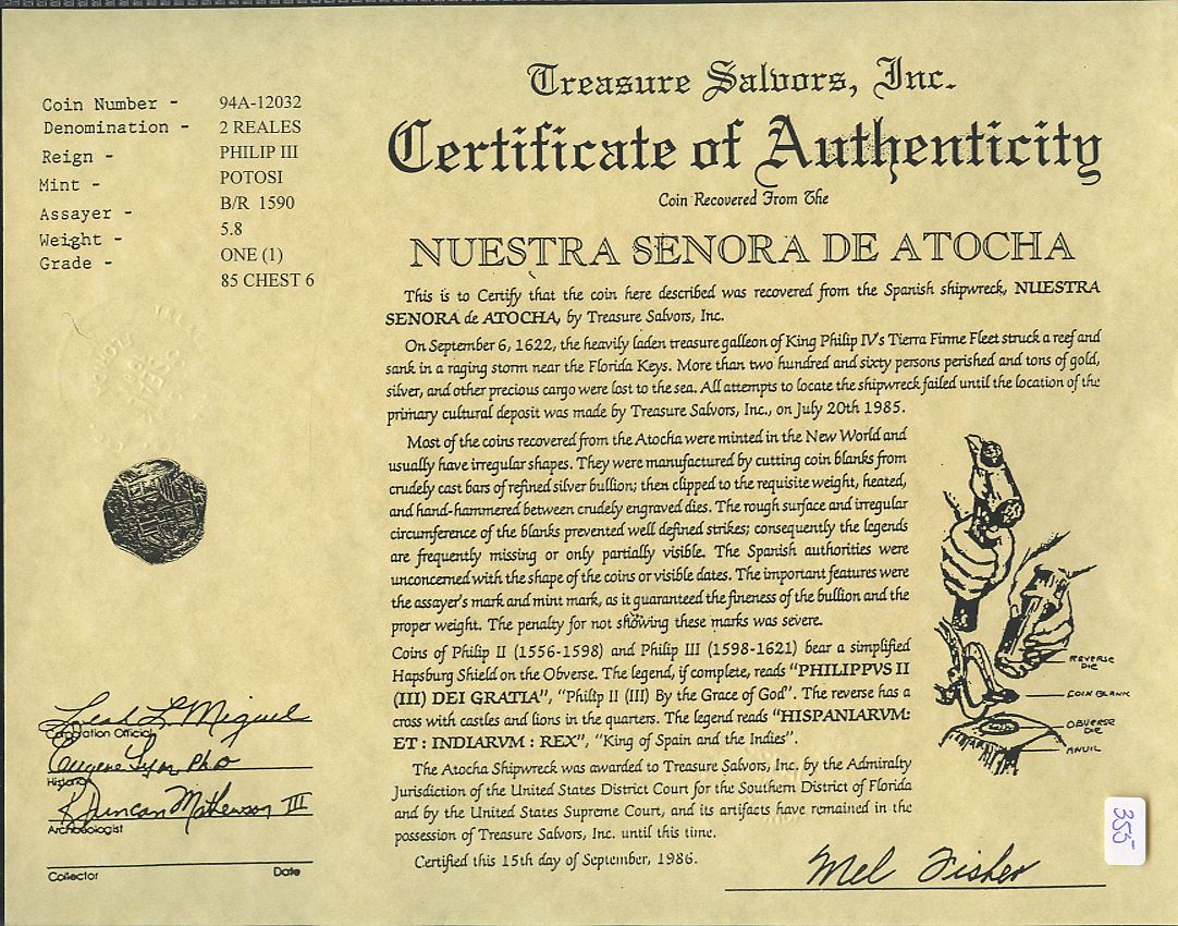 All items are genuine unless noted. Most shipwreck coins and artifacts come with a certificate of authenticity (please check the description for each item). By bidding in this auction you understand and agree to the Terms and Conditions posted here.