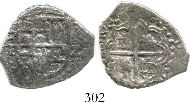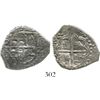Potosi, Bolivia, cob 2 reales, Philip III, assayer T, Grade 1. S-P21; KM-8. 6.0 grams. Oblong flan w