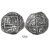 Potosi, Bolivia, cob 2 reales, Philip III, assayer T, Grade 1.