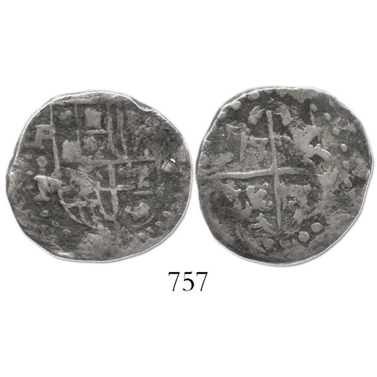 Potosi, Bolivia, cob 2 reales, Philip IV, assayer P (1640s), very rare.