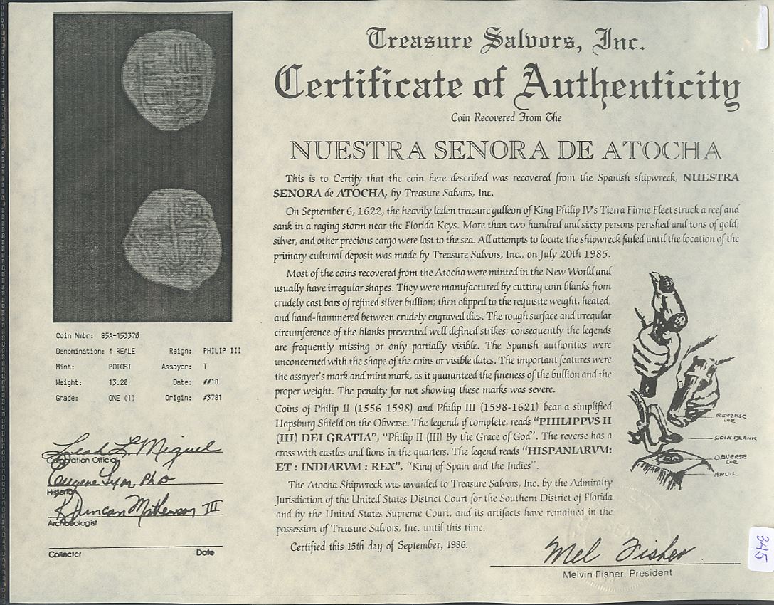 All items are genuine unless noted. Most shipwreck coins and artifacts come with a certificate of authenticity (please check the description for each item). By bidding in this auction you understand and agree to the Terms and Conditions posted here.