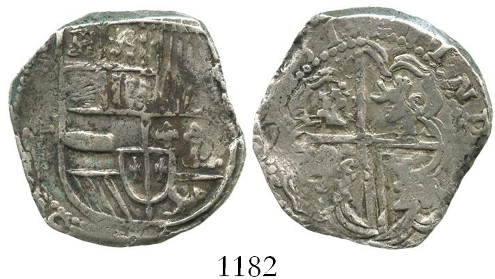 Potosi, Bolivia, cob 4 reales, (16)31T. S-P26; KM-17a; CT-722. 13.5 grams. Bold 1 and partial 3 of date, good full shield, full but slightly doubled cross, AVF with patchy toning. Pedigreed to the Ponterio auction of March 1995, with original lot-tag #1100.