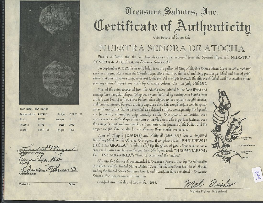 All items are genuine unless noted. Most shipwreck coins and artifacts come with a certificate of authenticity (please check the description for each item). By bidding in this auction you understand and agree to the Terms and Conditions posted here.