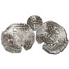 Potosi, Bolivia, cob 4 reales, (1649-50)O, with crowned-L countermark on cross.