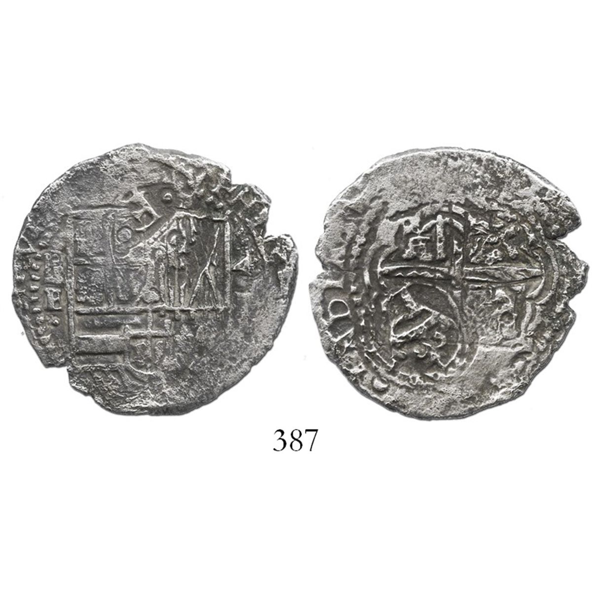Potosi, Bolivia, cob 4 reales, (1651-2)E, with 2 countermarks (very rare): crowned .F. on shield and