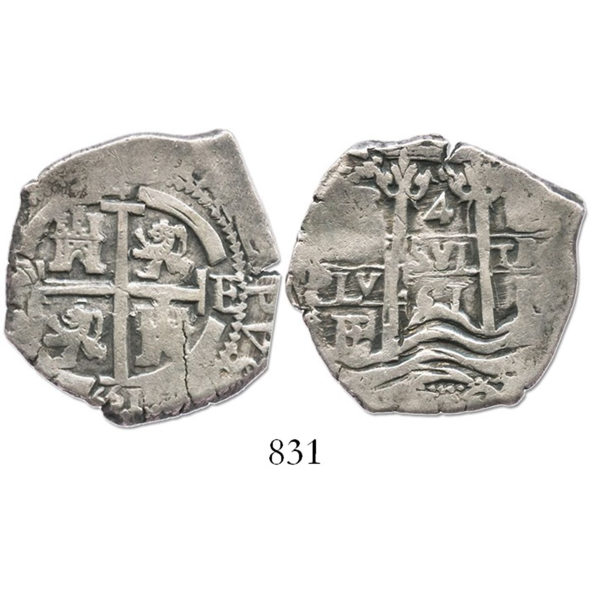 Potosi, Bolivia, cob 4 reales, 1661E, rare.