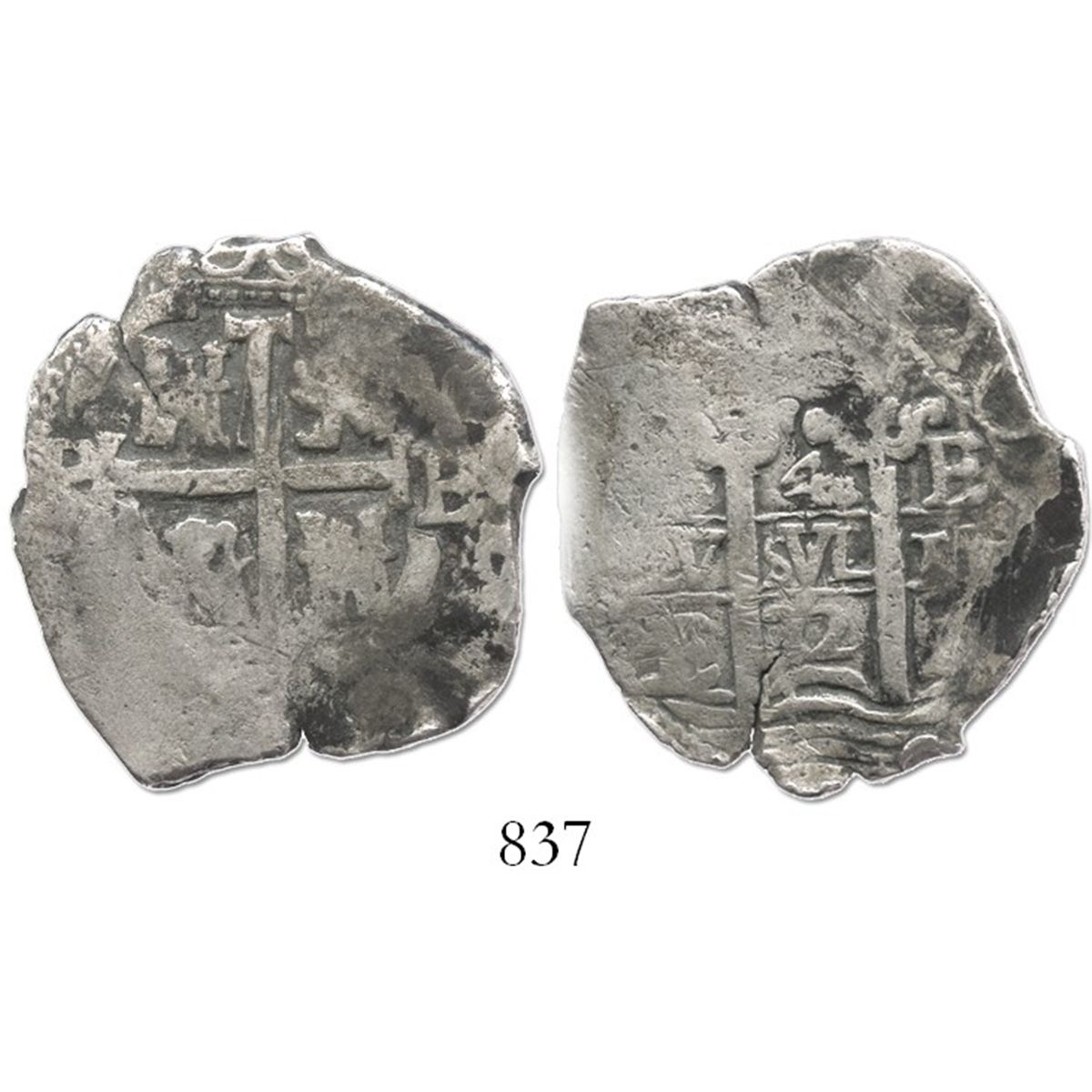 Potosi, Bolivia, cob 4 reales, 1672E, rare.