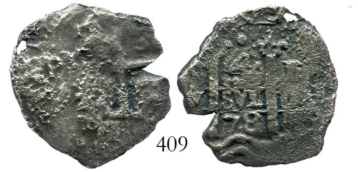 Potosi, Bolivia, cob 4 reales, 1678E. S-P37b; KM-25; CT-503. 6.9 grams. Full pillars with bold date, messy cross due to heavy corrosion. With photo-certificate. Recovered from: Consolacion, sunk in 1681 off Ecuador