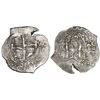 Potosi, Bolivia, cob 4 reales, 1686VR. S-P40; KM-25; CT-514. 13.78 grams. Very broad, odd-shaped flan (strange edge-crack) with full but doubled cross and pillars, two dates, three mintmarks and assayers, lightly toned XF.