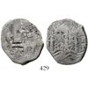 Potosi, Bolivia, cob 4 reales, 1687VR, rare provenance. S-P40; KM-25; CT-515. 10.8 grams. One of very few cob 4R from this wreck, with clear 87 date twice due to double-strike on pillars side, the cross side weaker, with light to moderate surface corrosion all over. From the Feversham, sunk in 1711 off Nova Scotia
