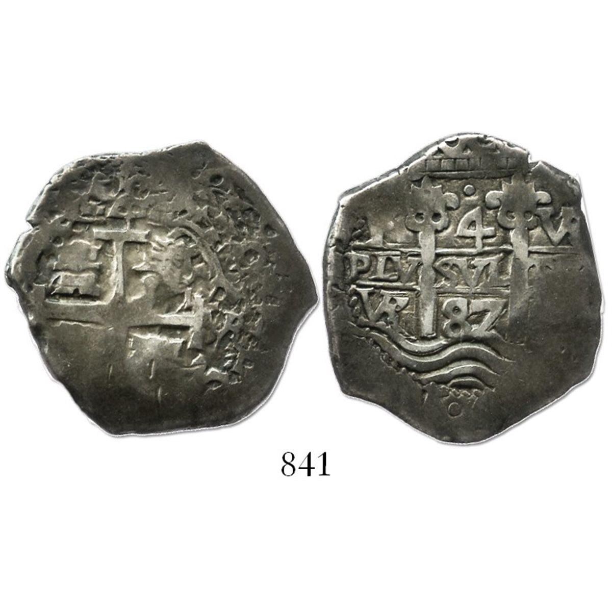 Potosi, Bolivia, cob 4 reales, 1687VR.