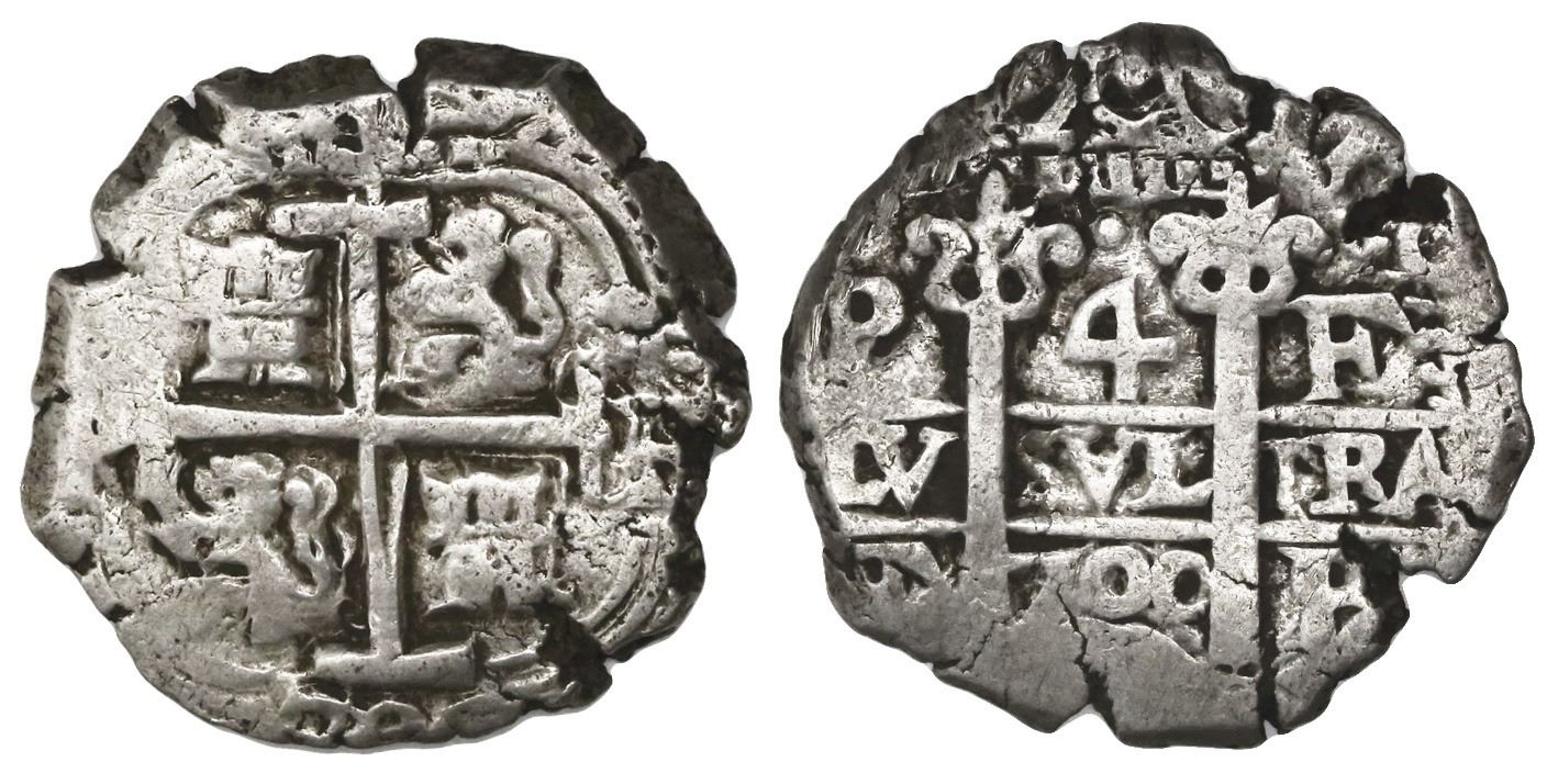 Potosi, Bolivia, cob 4 reales, 1700F.