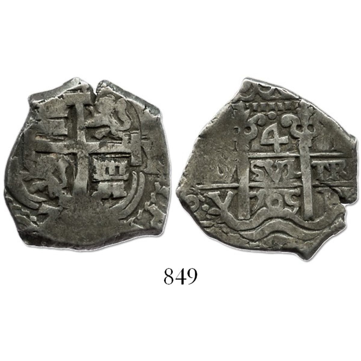Potosi, Bolivia, cob 4 reales, 1705Y, rare.