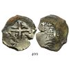 Potosi, Bolivia, cob 4 reales, 1708Y, ex-Ullian. S-P43a; KM-30 ;CT-1089. 13.12 grams. Choice full cross, bold date and denomination, solid and uncorroded, with large patch of brownish encrustation on part of edge, which also has a split. From the "Cabin Wreck" site, with Real Eight certificate signed by Lou Ullian, and pedigreed to our Auction #5, with original lot-tag #467. Recovered from: Spanish 1715 Fleet, east coast of Florida