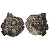 Potosi, Bolivia, cob 4 reales, 1717Y. S-P43a; KM-30; CT-1098. 13.59 grams. Full but off-center cross, crudely doubled pillars, crude edge (as made), Fine+ with patchy black toning.