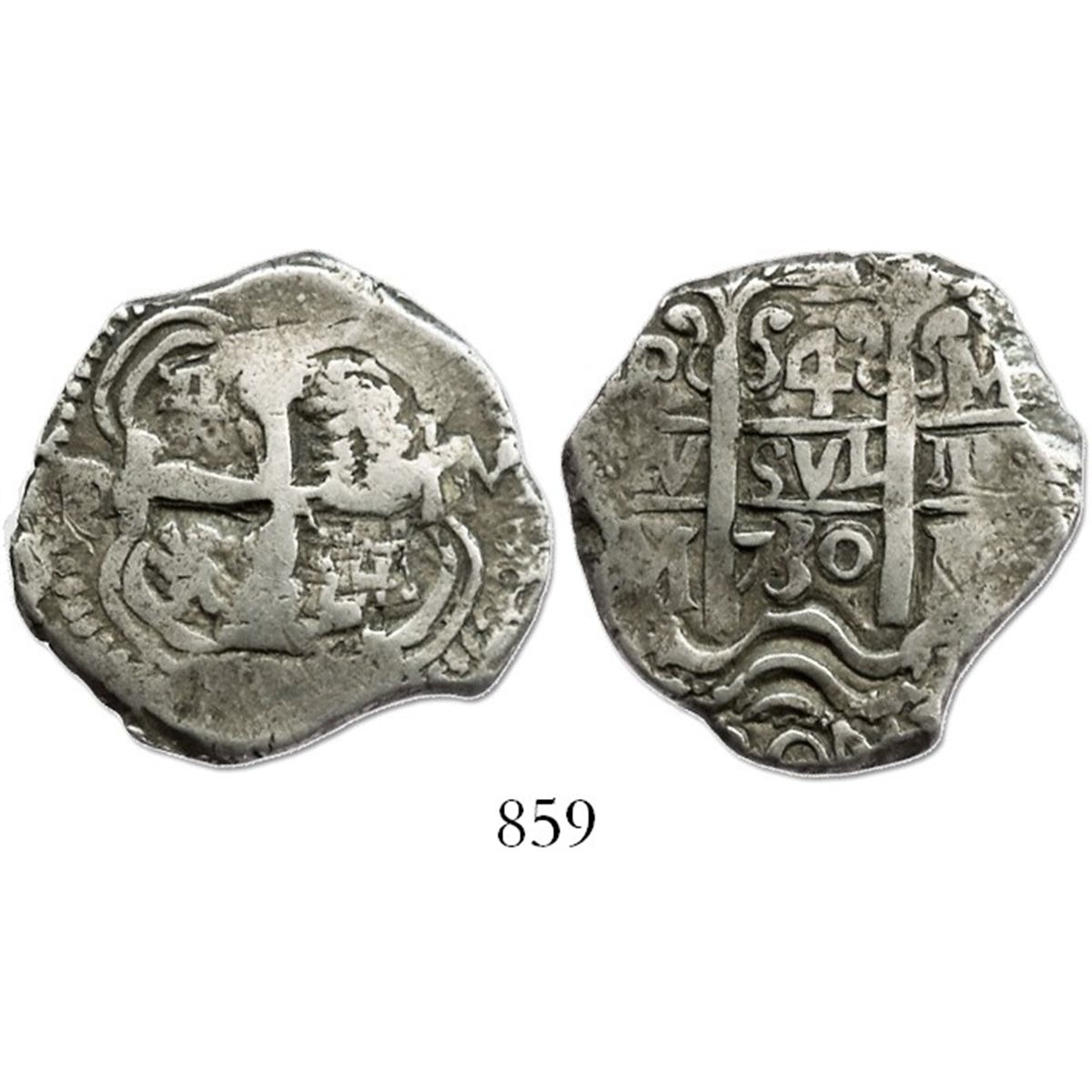 Potosi, Bolivia, cob 4 reales, 1730M, rare.