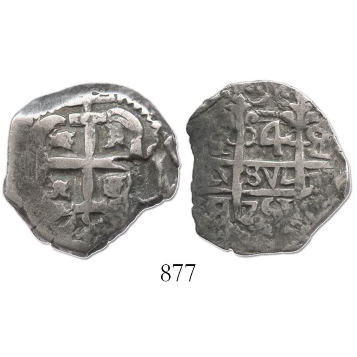 Potosi, Bolivia, cob 4 reales, 1751q/E, very rare.